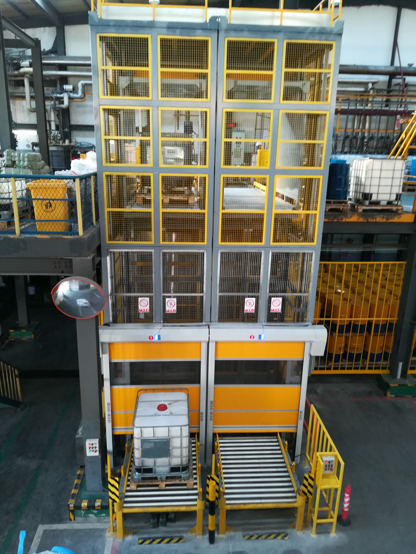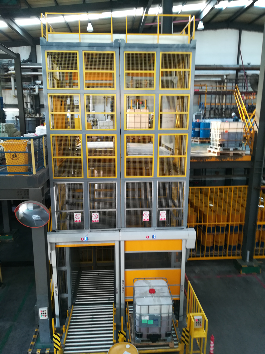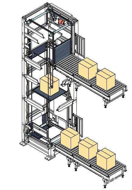 形式多样,布置灵活,物料可以从各个方向上进出提升机,便于生产设备布局;承载范围大,最大可达3000Kg;可设置各种安全装置,提高设备运行的安全性;升降行程为20m;升降速度<30m/min;最大载荷<3000kg;物料种类有包装箱、托板;装饰材料为铝型材+阳光、钢板、铝网等;适用于家电,食品,医药,烟草,机械加工等行业的垂直输送。