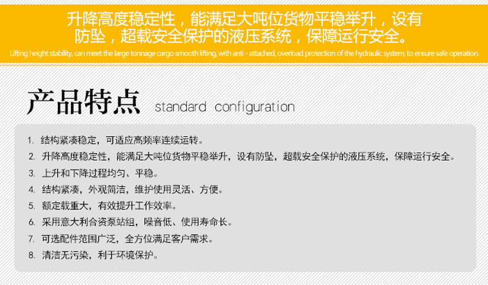 在选购导轨式升降机时,首先要对企业的使用范围(台面尺寸、升高高度、载重重量)、工作频繁程度、利用率、等因素进行综合考虑,选择适合本单位使用要求工作级别的升降货梯。根据拟定的技术参数,进行市场调研。选择的供货厂家,首要条件是需要看生产厂家的信誉,再就是售后服务能力。只要是产品质量好,性能优良,安全装置齐全的升降货梯,在价格合理的情况下,都可作为选择的对象。
