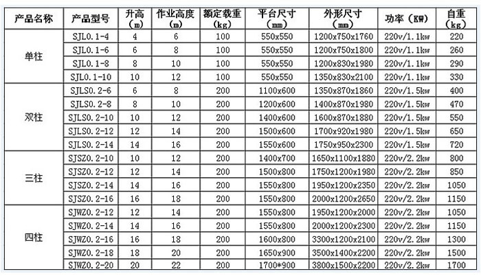 整体采用型材强度高,具有造型美观、体积小、重量轻、结构紧凑、移动方便、升降平台平稳、操作方便、安全可靠等优点,令高空作业更方便快捷,能够快速、慢速行走,可调速,是现代企业高效安全生产之理想高空作业设备。主要产品分为单立柱铝合金,双立柱铝合金,三立柱铝合金、四立柱铝合金。