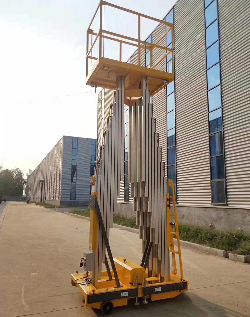 整体采用高强度铝型材精制而成由于型材强度高,具有造型美观、体积小、重量轻、结构紧凑、移动方便、升降平台平稳、操作方便、安全可靠等优点,令高空作业更方便快捷,能够快速、慢速行走,可调速,是现代企业高效安全生产之理想高空作业设备。主要产品分为单立柱铝合金,双立柱铝合金,三立柱铝合金、四立柱铝合金。