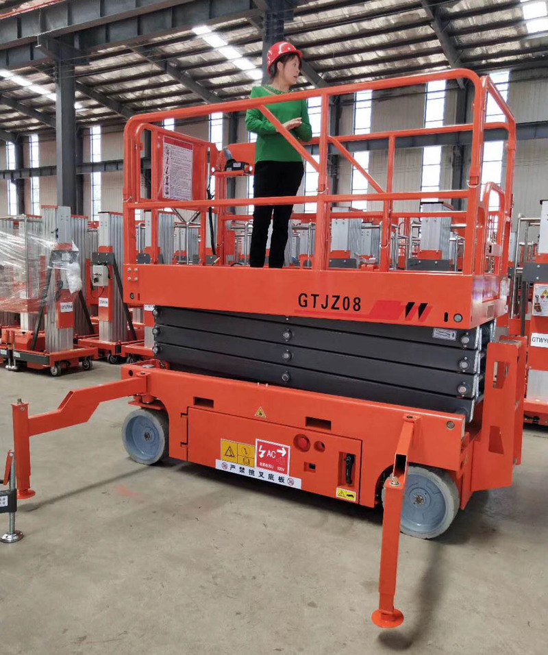 自行式升降作业平台自身具有行走和升降功能,用控制手柄控制行走方向,行走可调速并有刹车装置,用电瓶带动直流电机进行行走和升降,也可选用交流电机和柴油机进行行走和升降,还可选用无线电子遥控器进行升降,不需人工牵引,不需外接电源,移动灵活方便,使高空作业更方便快捷,是现代企业安全生产理想高空作业的设备。