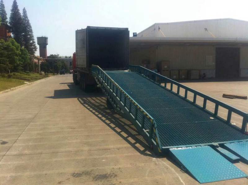 移动式登车桥产品简介:移动登车桥在现代物流现场已是一非常易见的结构形式,它是企业物流链的起点与终点,是企业快速、安全周转产品及货物的一个装卸货操作平台。 装卸货操作平台的高度固定,但来往运输车厢的厢地高度不一,运输车辆与装卸货站台之间总是形成一定的高度落差或间隙。造成搬运叉车不能进出运输车辆直接装卸货物。运用登车桥提供可靠的连接。使搬运叉车能够安全、快速地进出运输车辆进行装卸货作业。使用过程平稳可靠,安全性能高,装卸货物时节约了大量时间,省却了大量人力,使装卸货物大大的提高了效率。台面采用特制的菱形网格板有可靠的强度,能保证长期使用而不变形。它的菱形网状结构,充分保证了卓越的防滑性能,使叉车有更好的爬坡性和可操纵性,即使在雨、雪天气,仍能保证正常使用。