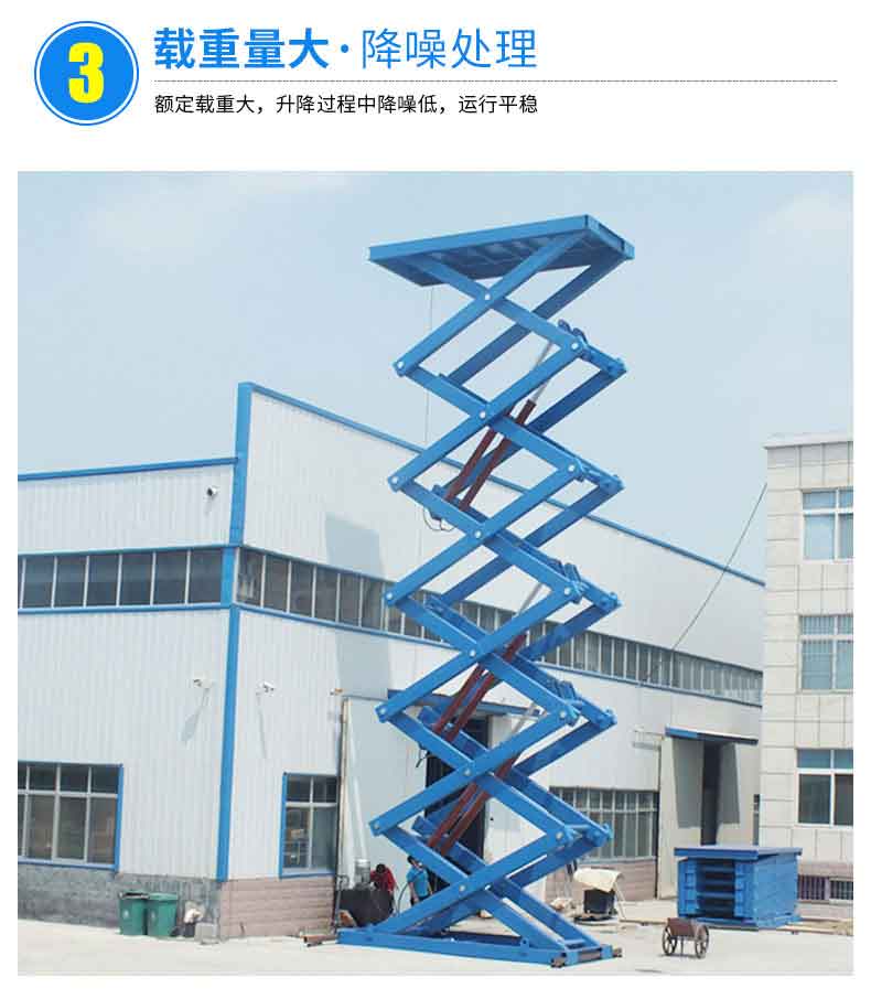 固定升降平台采用钢架结构或高强度钢板结构,承载力由0.1至100吨不等。产品尺寸及设备尺寸可根据用户不同需求定制,操作方式可分为上下控制和地面单人控制,也可点升点降,多层控制。