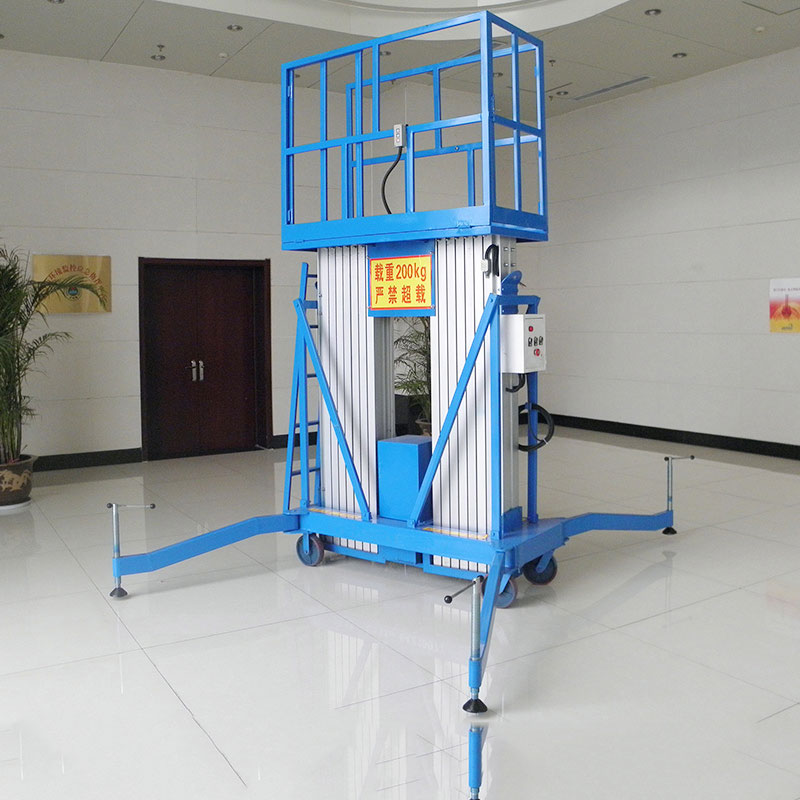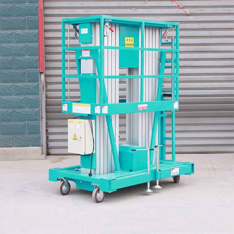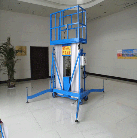 铝合金升降平台:整体采用铝型材制作而成 ,使升降台的偏转与摆动小。采用双桅柱式结构,载重量大,平台面积大,稳定性极好,运转灵活,推行方便。它轻盈的外观,能在小的空间内发挥好的举升能力。该升降机广泛用于厂房、宾馆、大厦、商场、车站、机场、体育场等。可用作电力线路、照明电器、高架管道等安装维护,高空清洁等单人工作的作业。