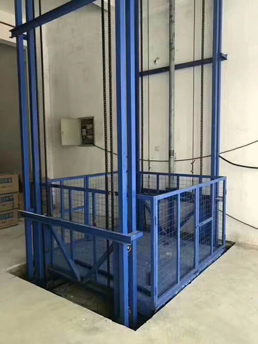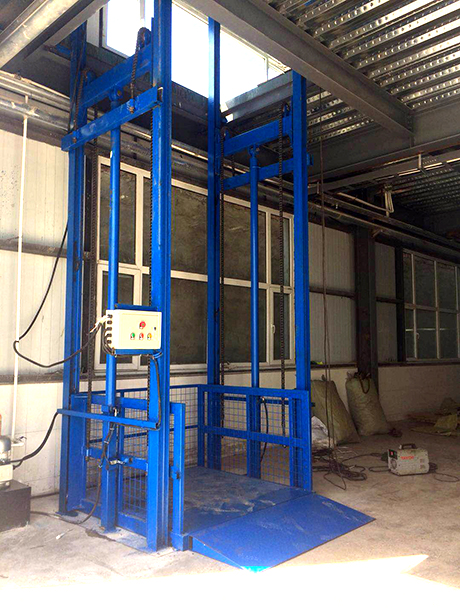 导轨链条式升降机是一种非电梯式升降机械设备,是根据液压叉车原理研制成功,是取代电梯设备。电梯成本低,故障率低。导轨式升降机载货广泛用于1至20米工业厂房,餐厅,酒楼楼层间的货物传输。最低高度在150-300mm,尤其适合不能开挖地坑的工作场所,并且无须上部吊点,形式多样化(双柱,四柱),设备运行平稳,操作简单可靠,货物传输经济便捷。
