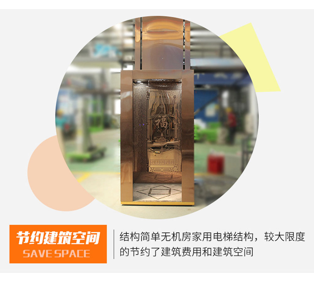 别墅电梯不仅方便通行,也是现代化社会发展的一种标志,它可以安装在私人别墅、复式建筑中,方便家庭成员上下楼。如果是复式楼房或者小型别墅、空间别墅,建议你选择小型家用电梯,小巧灵活,易安装,省空间。家用电梯极易融入家庭建筑空,对于那些预留空间有限,任何不能容纳传统电梯的狭小地方,但又必须有一台电梯的现有住宅来说,这类家用电梯是改善现况的理想选择方案。