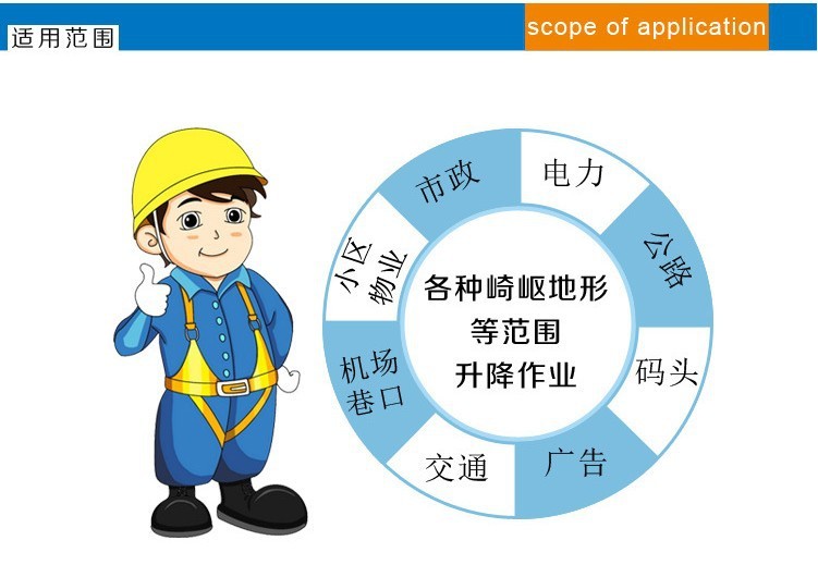 适用范围:市政路灯维修维护、交通、电力高空作业、小区路灯维修维护、电力高空架线、交警监控维修维护、车间灯具维护、物业小区高空作业及维修。
