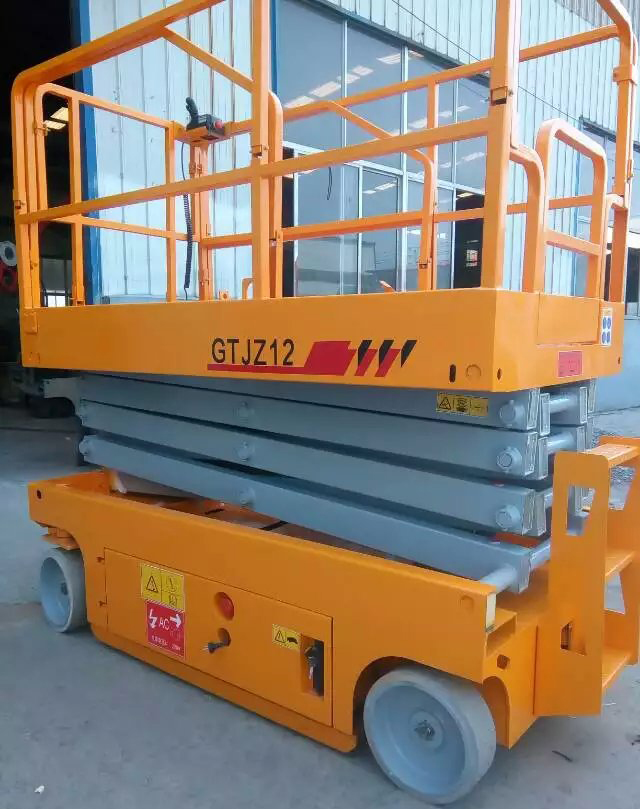 全自动自行式升降机,操作简单。方便快捷,安全可靠,是您升降设备的理想选择。全自动升降设备本产品采用优质结构钢,激光焊接电子机械手单面焊接双面成型工艺,意大利原装进口液压泵站或鞍山合资液压泵站,航天插装阀技术,平台装有水平报警仪、平衡阀、自动安全板等警报装置,平台安全可靠耐用,作业高度可达12米,载重300公斤,围栏可水平延伸极大的扩展了作业范围,整机一年保修,关键部件五年保修,适合工厂车间、广场大堂机场、园区等有高空作业需求的客户。