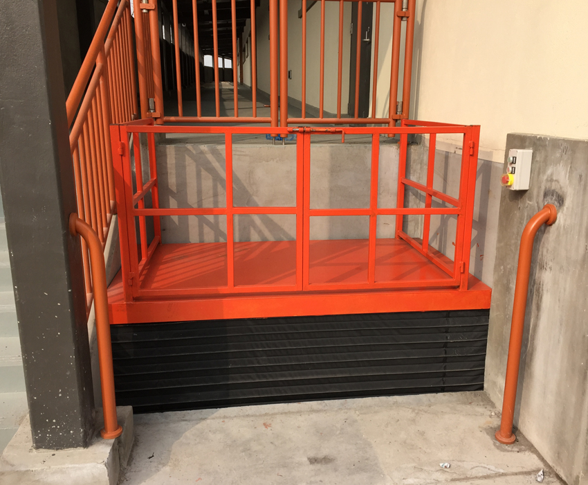 升降平台是一种垂直运送人或物的起重机械,也指在工厂、自动仓库等物流系统中进行垂直输送的设备,升降台上往往还装有各种平面输送设备,作为不同高度输送线的连接装置。一般采用液压驱动,故称液压升降台。除作为不同高度的货物输送外,广泛应用于高空的安装、维修等作业。升降台自由升降的特点已经广泛运用于市政维修,码头、物流中心货物运输,建筑装潢等,安装了汽车底盘、电瓶车底盘等能自由行走,工作高度空间也有所改变,具有重量轻、自行走、电启动、自支腿、操作简单、作业面大,能跨越障碍进行高空作业等360度自由旋转优点。