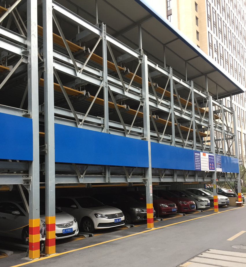 整机特点:占地少,容车量大,高层设计最高能够达到平均一辆车仅占一平方米的空间,可同时提供多车位进出口,等待时间短。